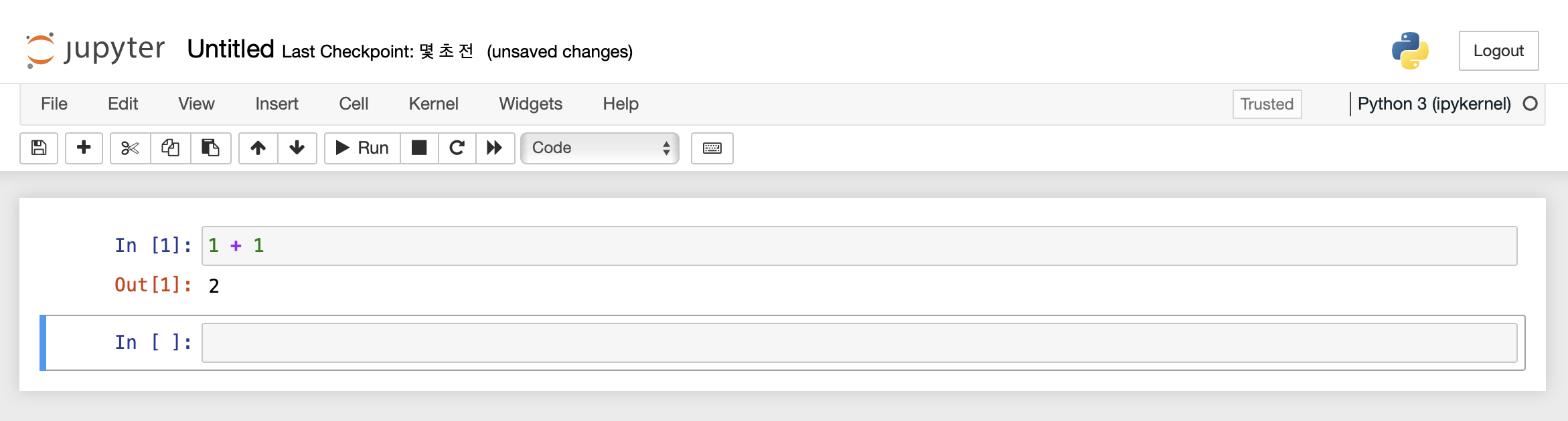 Anaconda 설치로만 Jupyter Notebook이 잘 실행되는 것을 확인할 수 있다.