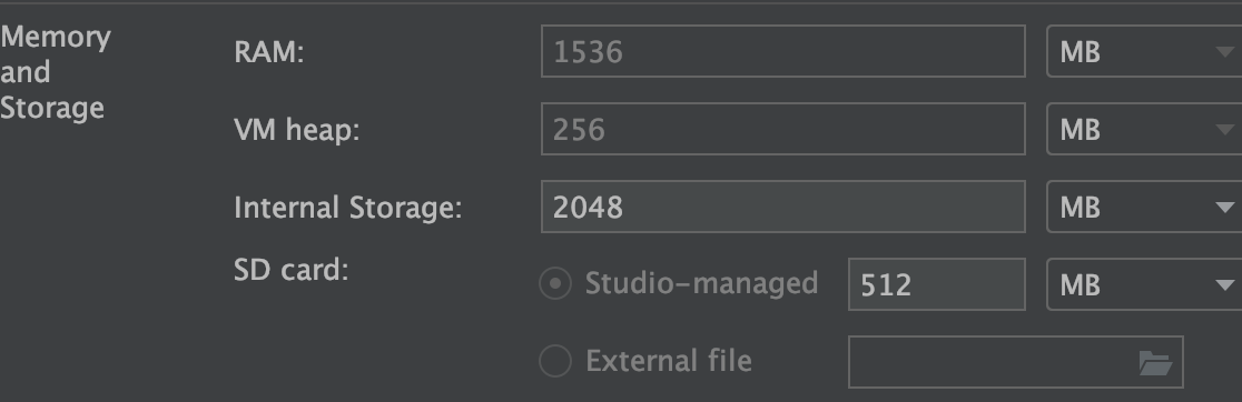 메모리, 저장 공간의 용량도 설정할 수 있다.
