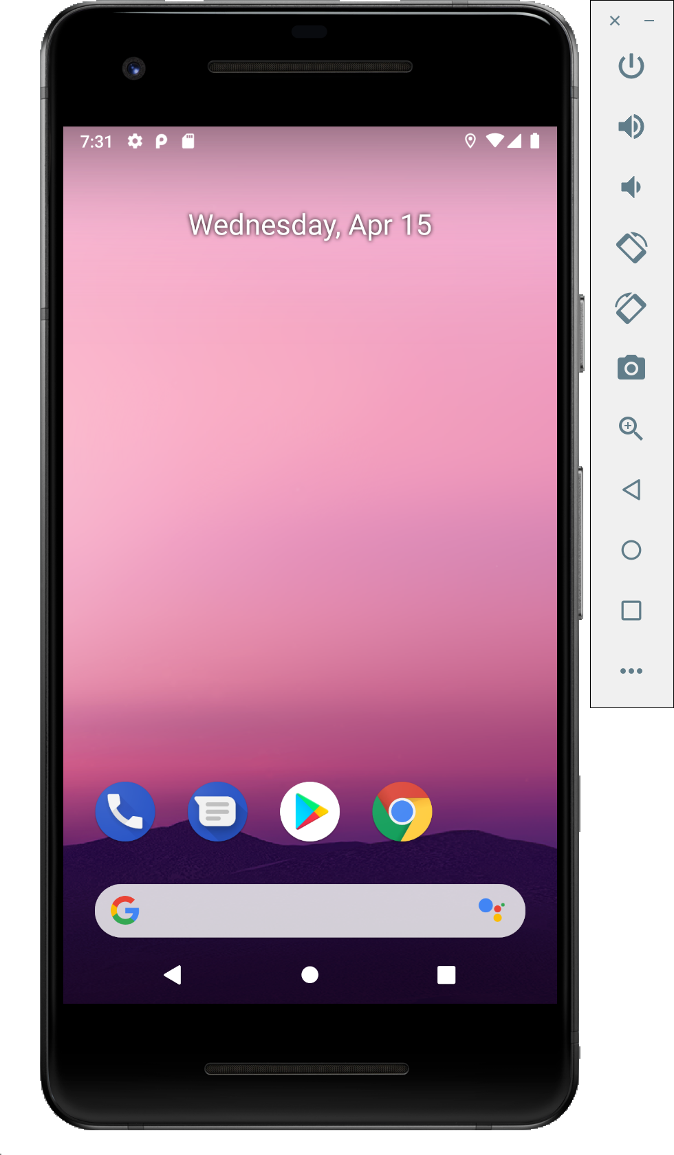 디바이스를 실행하면 에뮬레이터가 켜지고 만든 디바이스가 동작하는 것을 확인할 수 있다. 우측에 있는 도구 바를 통해 원하는 조작을 할 수 있다. 스크린샷을 찍으면 PC의 바탕화면에 캡처 본이 저장된다.