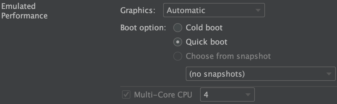 그래픽을 자동으로 할지, 하드웨어 가속을 할지, Software 가속을 할지와 부트 옵션, CPU 코어 수를 고를 수 있다.