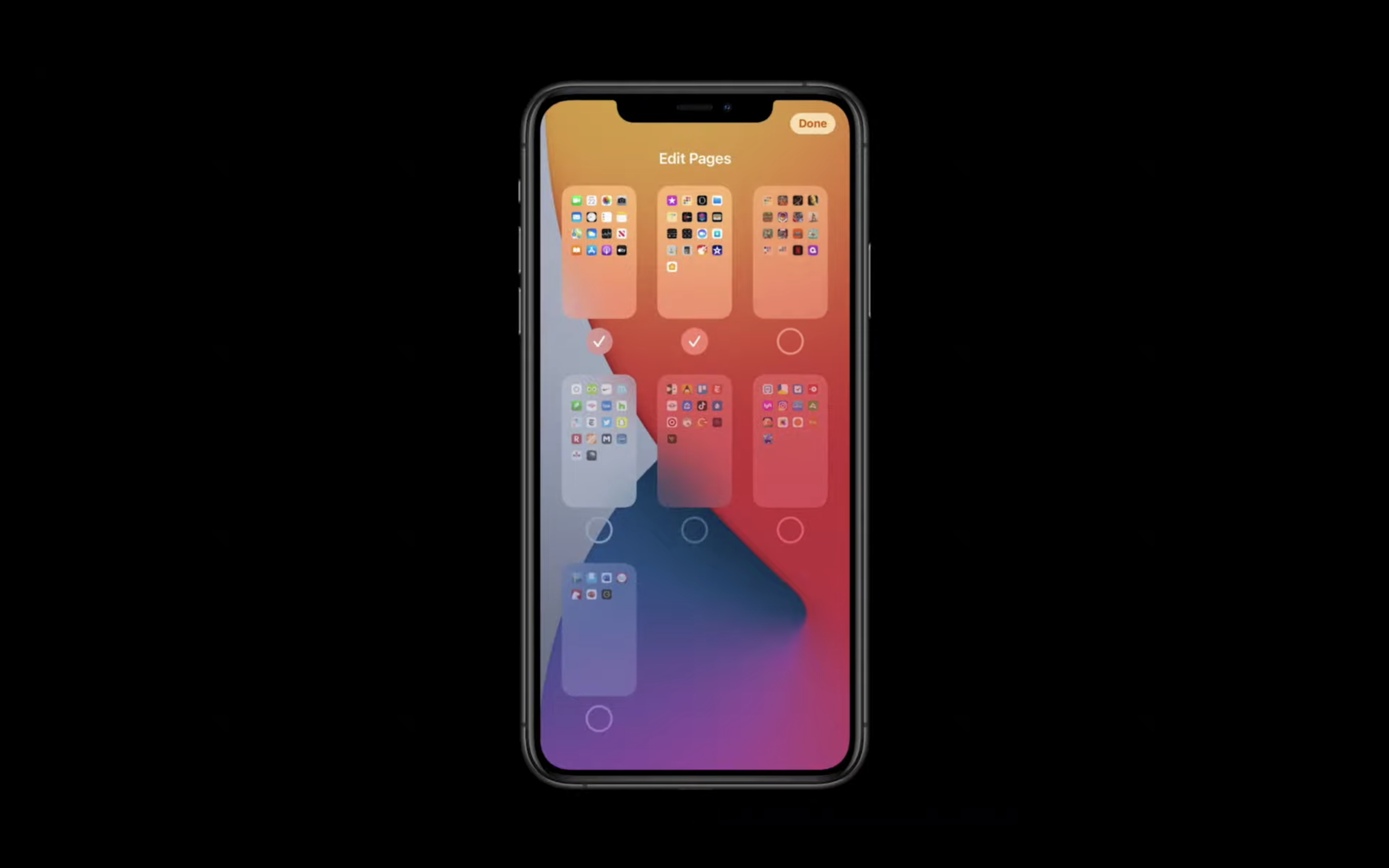 홈 화면의 페이지를 사용하지 않을 수 있다. 앞선 앱 라이브러리를 사용하면 모든 앱을 찾을 수 있기 때문에 자주 쓰지 않는 페이지는 숨길 수 있는 기능이 생겼다.