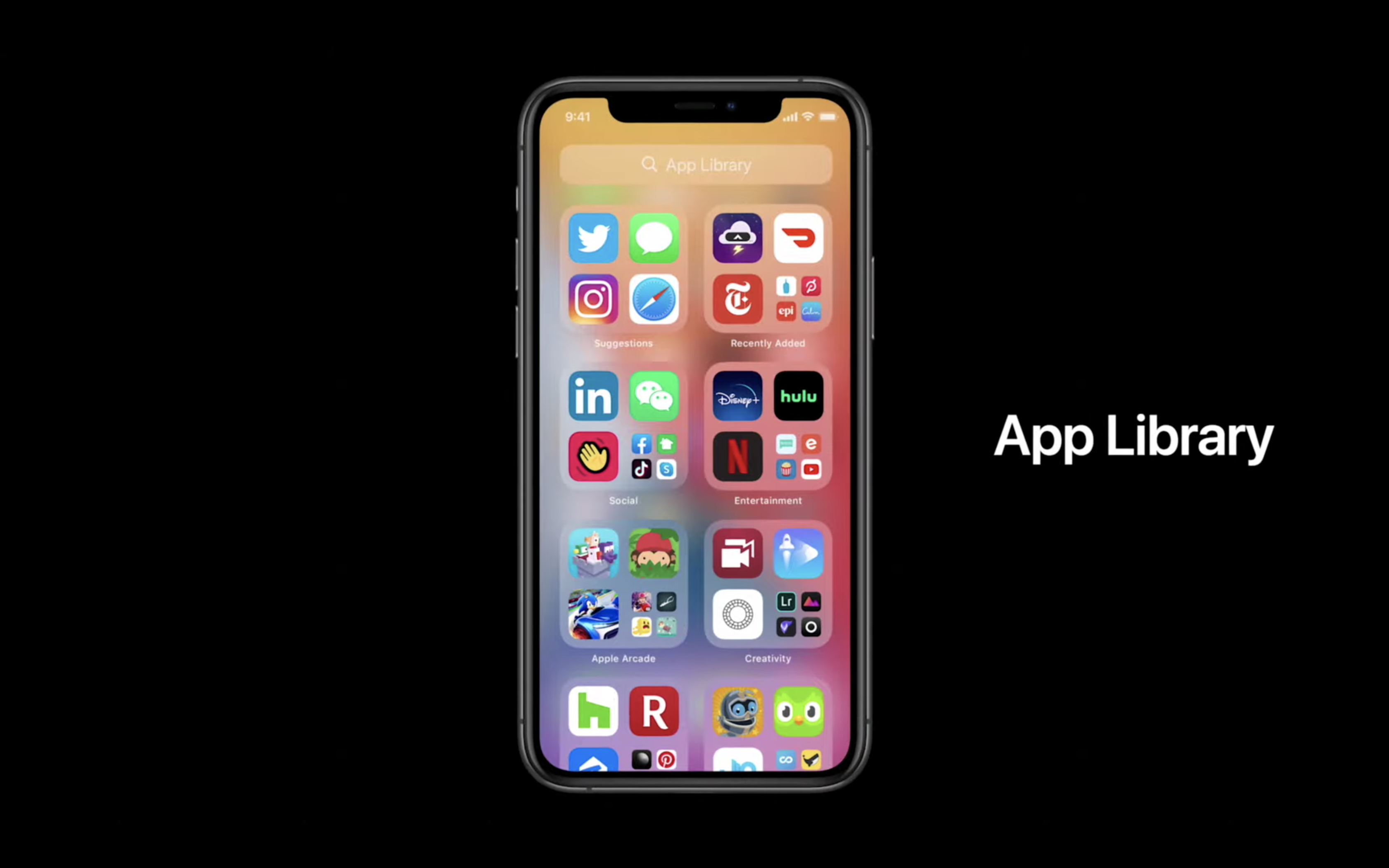 홈 화면의 마지막 페이지에서 자동으로 모든 앱을 카테고리별로 묶어주는 기능이다. 소셜, 건강, 엔터테인먼트 등의 카테고리와 함께 추천, 최근에 추가된 앱 폴더를 제공한다.