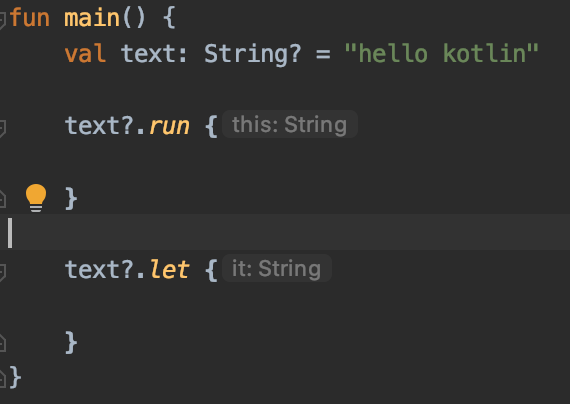 위와 같이 사용해보면 `T.run`의 경우는 this로 받고, `T.let`의 경우는 it으로 받게 된다. 예시 코드를 보며 좀 더 자세히 살펴보자.